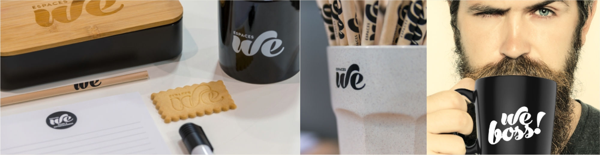 Chez We, nous avons pensé à vous dans les moindres détails dès votre arrivée. Un kit design de bienvenue sous forme de bento avec marqueur, crayons, blocs, petit biscuit sans oublier le mug pour le boss !