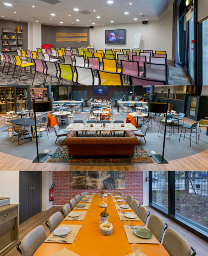 Profitez de nos espaces et de nos services pour organiser vos événements festifs et ludiques. Notre patio modulable et sonorisé, notre terrasse donnant dans le parc, ou encore notre restaurant à la décoration chaleureuse et contemporaine, seront les lieux idéaux pour personnaliser tous vos évènements professionnels ou privés.