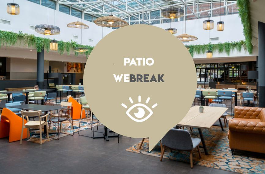 WeBreak c’est le lieu de vie destiné à vos moments gourmands et conviviaux. C’est aussi 300m² de patio aménagé et modulable pour profiter d’instants de détente. Propice aux échanges informels, il surprend par son design chaleureux et atypique. Baigné de lumière et soigneusement décoré, il transformera tous vos temps de repas en parenthèses authentiques et savoureuses.